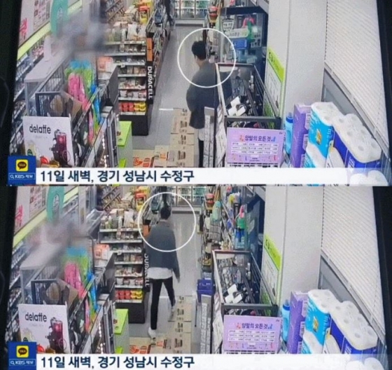 편의점 출입문부터 비틀거리며 걷던 신혜성은 라이터, 과자 등을 현금으로 구입했으며, 거스름 돈을 건네는 직원에게 살짝 고개를 숙여 인사했다.