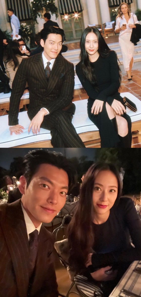 사진 속엔 김우빈과 정수정이 미국 캘리포니아에서 열린 한 패션쇼에 참석했다. 두 사람은 모던하면서도 센스있는 패션으로 이목을 끌었다.