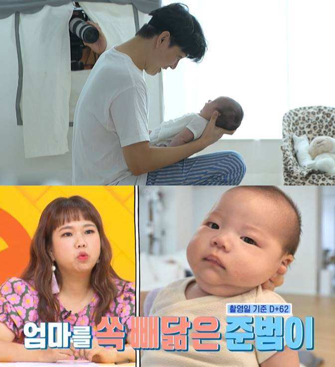 똥별이의 출생 후 이름은 준범이. 생후 62일이 된 준범이는 엄마 홍현희를 쏙 빼닮은 붕어빵 외모를 벌써부터 보여줬다.