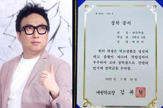 개그맨 박명수의 딸 민서 양이 장학금을 받았다.