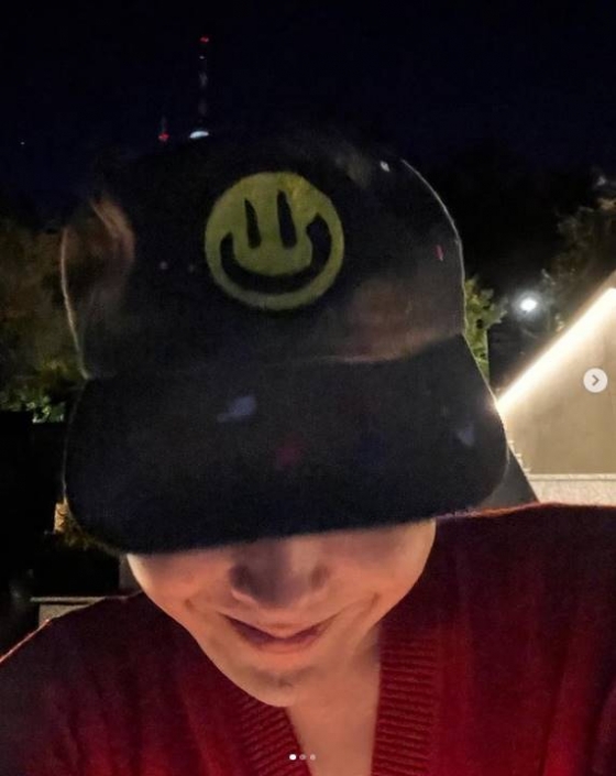 공개된 사진 속 지드래곤은 스마일 그림이 그려진 모자를 쓰고 자신도 미소를 진 표정을 선보였다.