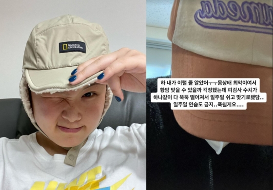 이채린은 20일 자신의 인스타그램을 통해 "내가 이럴 줄 알았어. 몸 상태 최악이여서 항암 맞을 수 있을까 걱정했는데 피 검사 수치가 하나 같이 다 뚝뚝 떨어져서 일주일 쉬고 맞기로 했다. 일주일 연습도 금지, 푹 쉴게요"란 글을 게재했다.