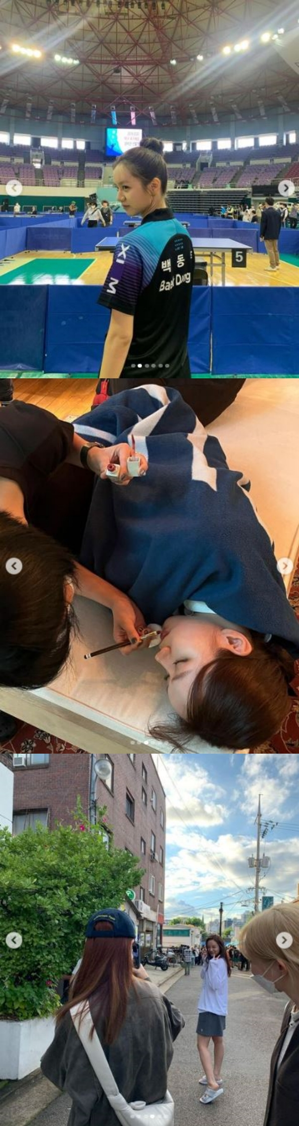 공개된 사진에는 드라마 '일당백집사'의 비하인드 사진이 담겼다. 혜리는 극중 탁구 에이스 백동주를 연기하기 위해 탁구복을 입고 다양한 표정을 짓고 있다.