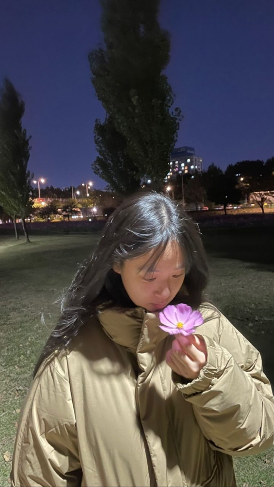 비비는 21일 자신의 인스타그램에 별다른 멘트 없이 한 장의 사진을 게재했다. 화장기 없는 수수한 모습의 비비는 코스모스를 한 송이 꺾어 응시하고 있다.
