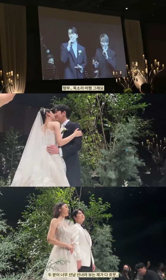 최다빈은 포레스텔라의 축가 장면을 공개하며 '축가 순서에는 귀 호강을 하고 왔는데요. 형부 목소리 어쩜 그래요'라는 자막으로, 유쾌함을 더했다. 이어 김연아를 바라보는 고우림의 모습과 함께 '형부 눈에서 꿀 떨어져요. 두 분이 너무 선남선녀라 보는 제가 다 흐뭇'이라고 적었다.