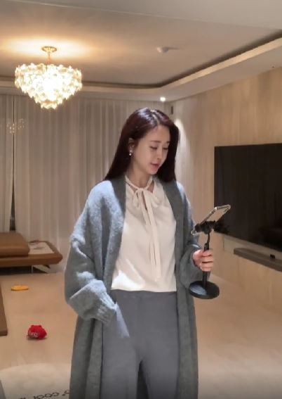 영상에는 함소원이 회색 니트에 단아한 블라우스를 입고 여러 포즈를 취하는 모습이 담겨 있다.