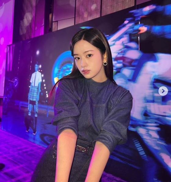 공개된 사진 속 안유진은 데님 미니 원피스를 입고 또렷한 눈빛으로 카메라를 응시하고 있다. 또 다른 사진에서는 의자에 앉아 다리를 꼰 채 가벼운 미소를 짓고 있다. 그의 화려한 이목구비와 패션 소화능력이 보는 이들의 시선을 사로 잡는다.