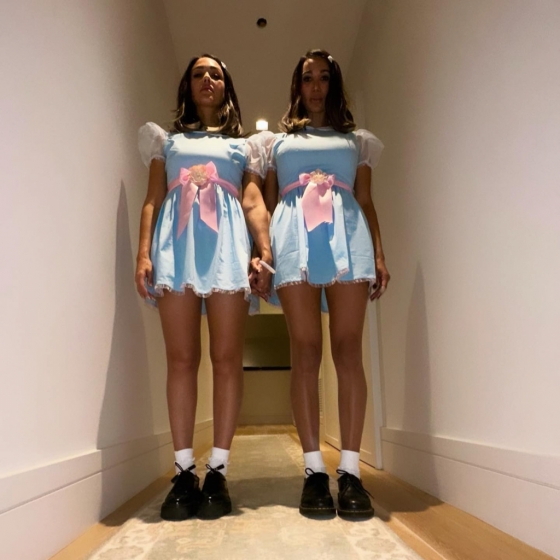 공개된 사진 속 제시카 알바는 자신의 친구와 함께 베이비 블루 색의 미니 드레스를 입고, 분홍색의 리본을 허리에 묶은 채 1980년대 공포 영화 '샤이닝' 속 쌍둥이의 상징적인 이미지를 흉내냈다.