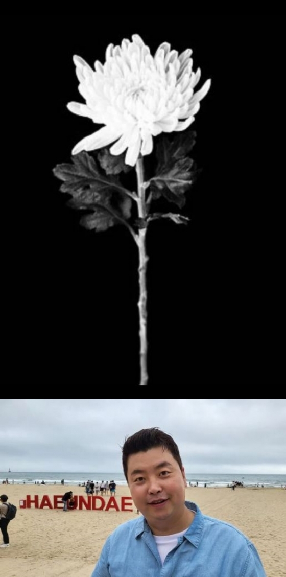 공개된 사진에는 검은색 배경에 흰색 국화꽃이 담겼다.