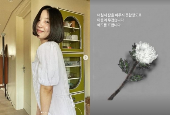 신다은은 1일 자신의 인스타그램 스토리를 통해 "며칠째 잠을 이루지 못할 정도로 마음이 무겁습니다. 애도를 표합니다"라는 글과 함께 국화 한송이가 담긴 사진을 게재했다.