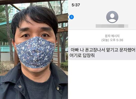캡처본에는 모르는 전화번호로 온 '아빠. 나 휴대전화 고장나서 맡기고 문자 보냈어. 여기로 답장줘'라는 메시지가 담겨 있다. 이는 스미싱 사기를 위해 임혁필에게 보내진 것으로 보인다.