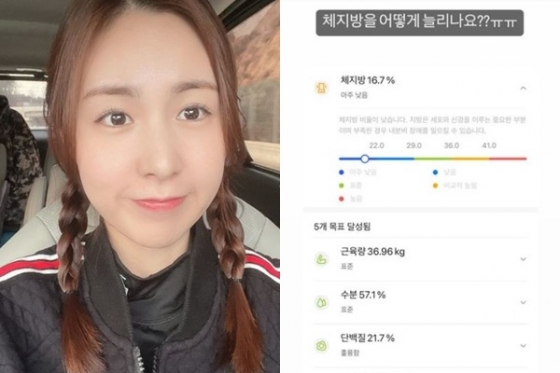 사진은 간미연의 현재 몸 상태를 기록한 것. 그는 체지방의 경우 16.7%로 '아주 낮음' 수치를 보여 걱정을 자아냈다.