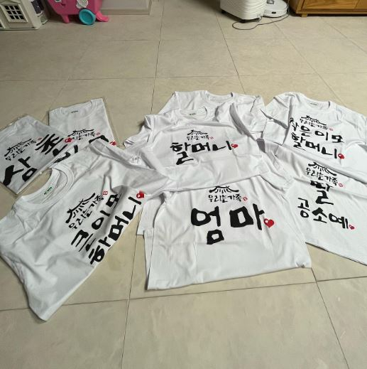 공개된 사진에는 흰색 바탕의 가족 커플티가 담겼다. 박슬기는 개성 넘치는 티셔츠를 만들어 '금손'을 인증했다.