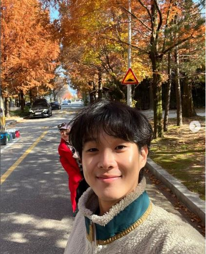 최우식은 8일 자신의 인스타그램을 통해 "촬영하다 단풍 구경"이라는 글과 함께 한 장의 사진을 게재했다.