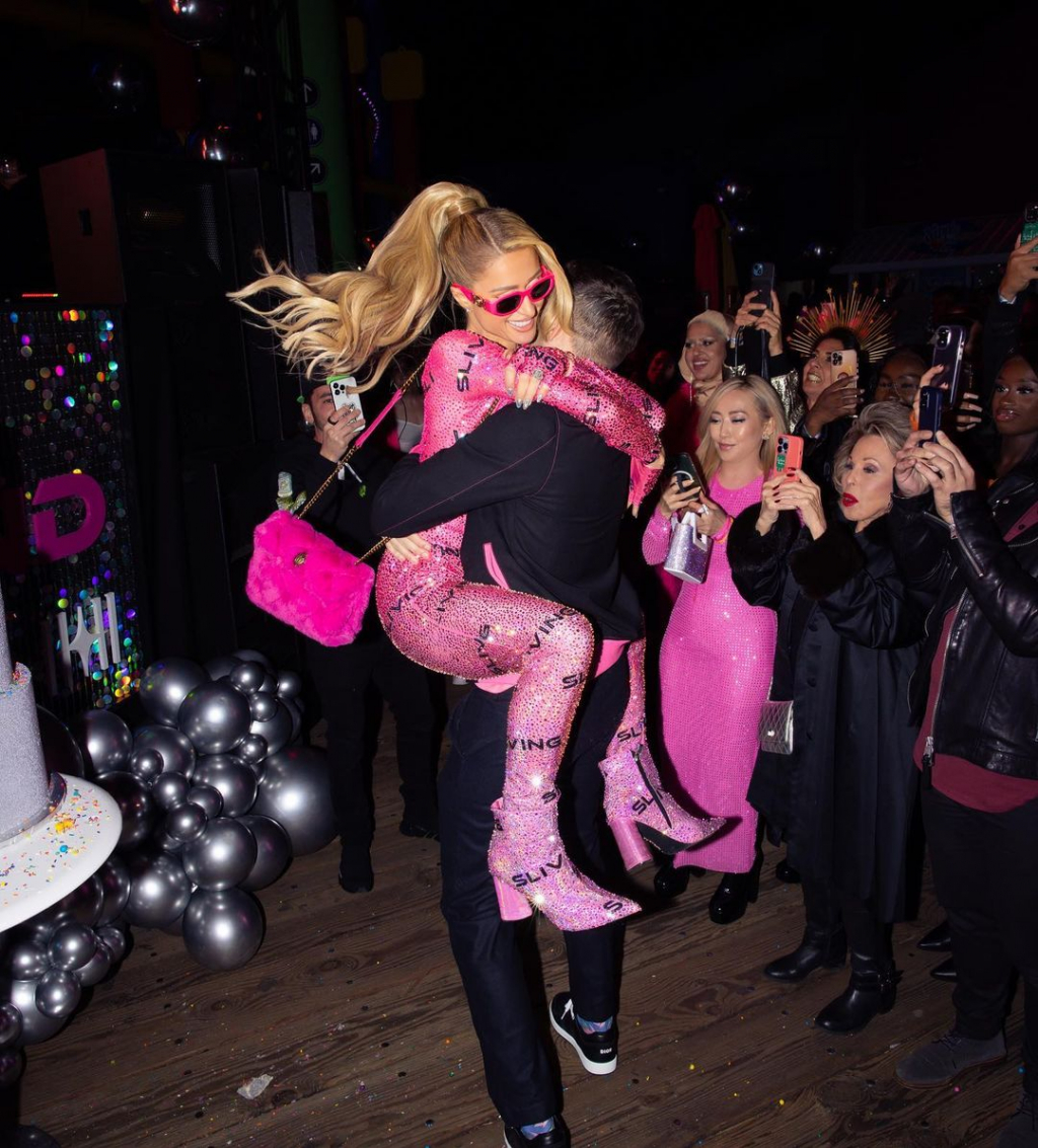 특히 몸에 딱 붙는 핑크색 수트를 입고 등장한 패리스 힐튼은 음악을 즐기며 남편 카터 리움과의 애정을 표현했다.