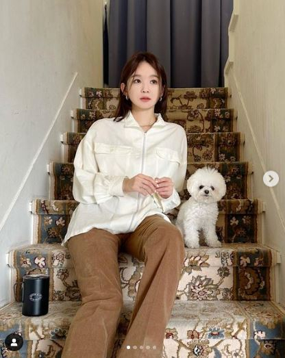 공개된 사진에는 강민경과 반려견 휴지의 모습이 담겼다. 강민경은 휴지와 다정한 투샷을 자랑했다.