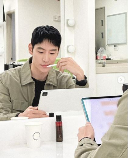 공개된 사진에는 이제훈이 거울 앞에서 태블릿 PC를 유심히 보는 모습이 담겼다.