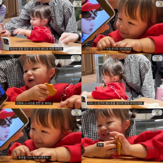 이어 진의 사진을 한번 본 체리는 다시 그 친구의 휴대폰을 찾으며 웃어 보였고 화면을 다시 켜서 진을 보여주자 체리는 "오빠 오빠!"라고 말해 보는 이들로 하여금 미소를 자아냈다.