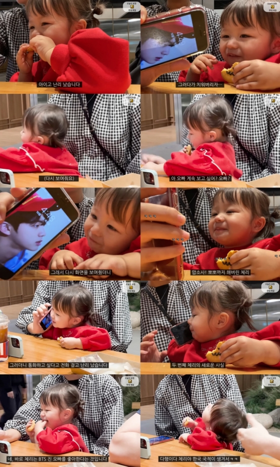 방탄소년단(BTS) 진에게 한눈에 반해버린 유명 유튜버 올리버쌤의 딸 체리가 시선을 모았다.