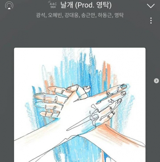 이와 함께 영탁이 공개한 사진에는 그가 '날개'를 음악 애플리케이션으로 재생한 인증샷, 지난 19일 2022 영탁 단독 콘서트 'TAK SHOW' - 서울 앵콜 공연에서 김희석, 오혜빈, 강대웅, 송근안, 하동근과 '날개'를 부른 모습이 담겨 있었다.