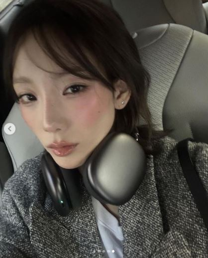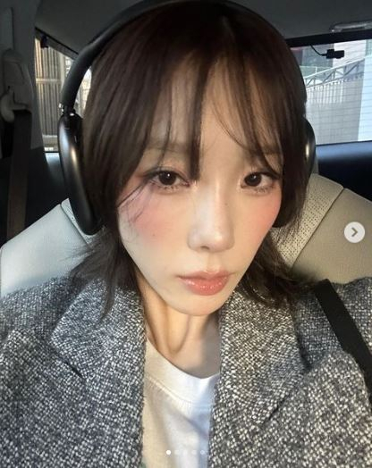 공개된 사진 속 태연은 차 안에서 셀카를 찍었다. 태연은 평소보다 핼쑥해진 얼굴로 팬들을 걱정시키기도 했다.