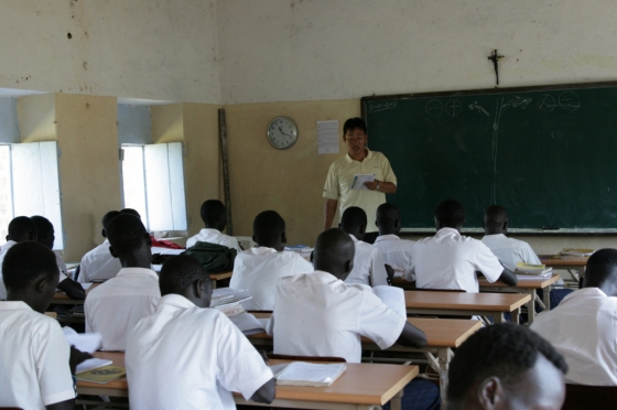 이태석 초등학교는 유치원생 34명과 초등학생 100명이 다닐 예정이며, 교사 5명과 직원 3명이 근무한다.
