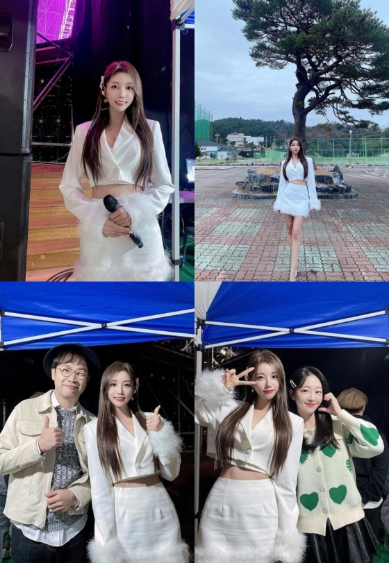 두리는 지난 23일 자신의 SNS를 통해 국방TV '위문열차' 공연 무대 비하인드 사진을 공개했다.