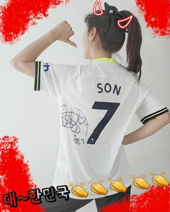 이와 함께 공개된 사진에는 손흥민 선수의 사인이 있는 유니폼을 착용한 오나라의 모습이 담겼다.