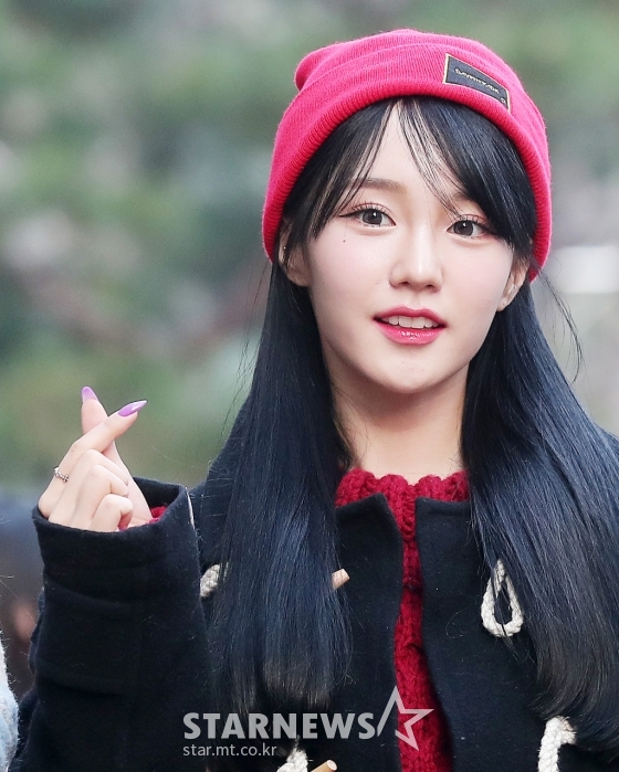 걸그룹 우아! 나나가 25일 오전 서울 영등포구 여의도동 KBS 신관홀에서 진행된 '뮤직뱅크' 리허설에 참석하며 포즈를 취하고 있다. 2022.11.25