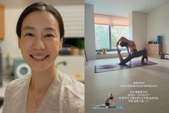 배우 김지호가 고난도 요가 동작을 성공했다.