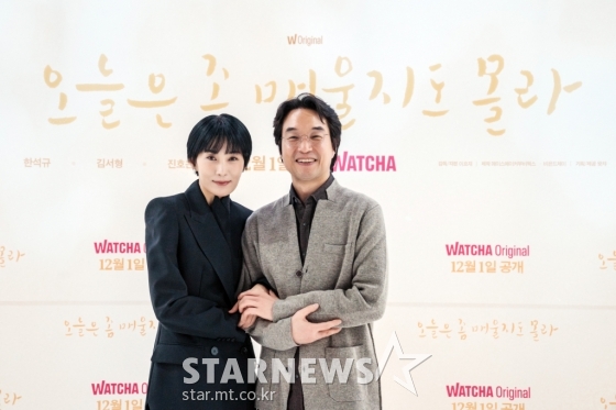 배우 김서형, 한석규가 29일 오후 온라인으로 진행된 왓챠 오리지널 드라마 '오늘은 좀 매울지도 몰라' 제작발표회에 참석해 포즈를 취하고 있다.