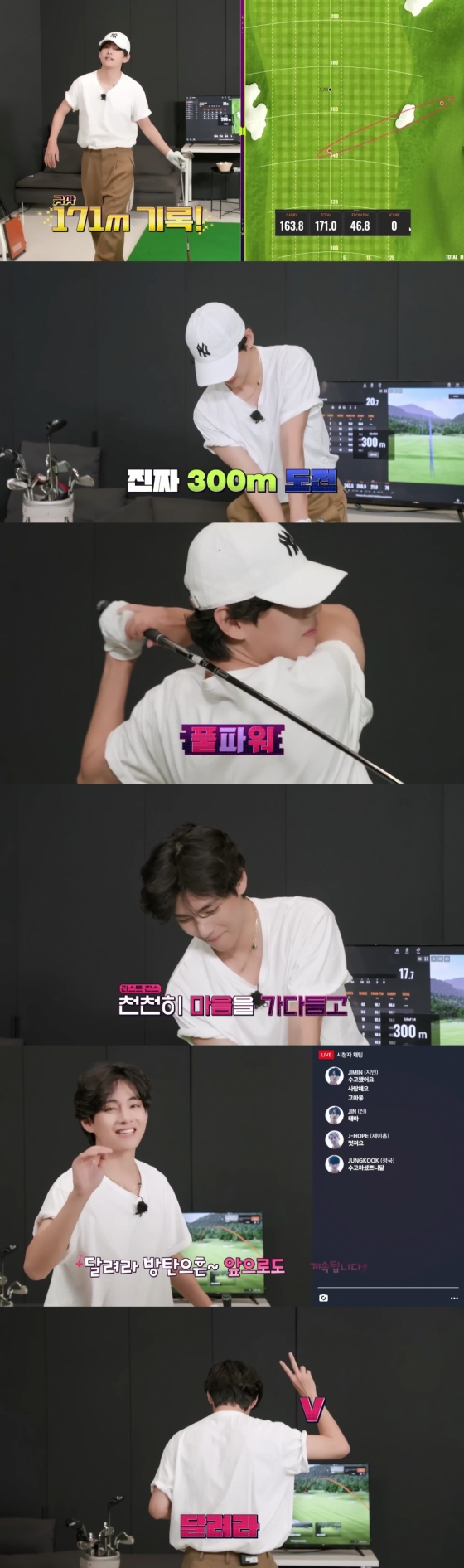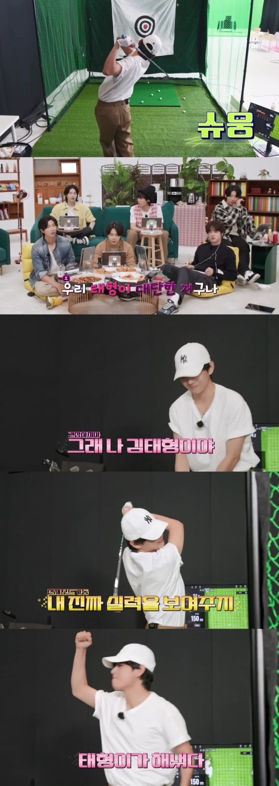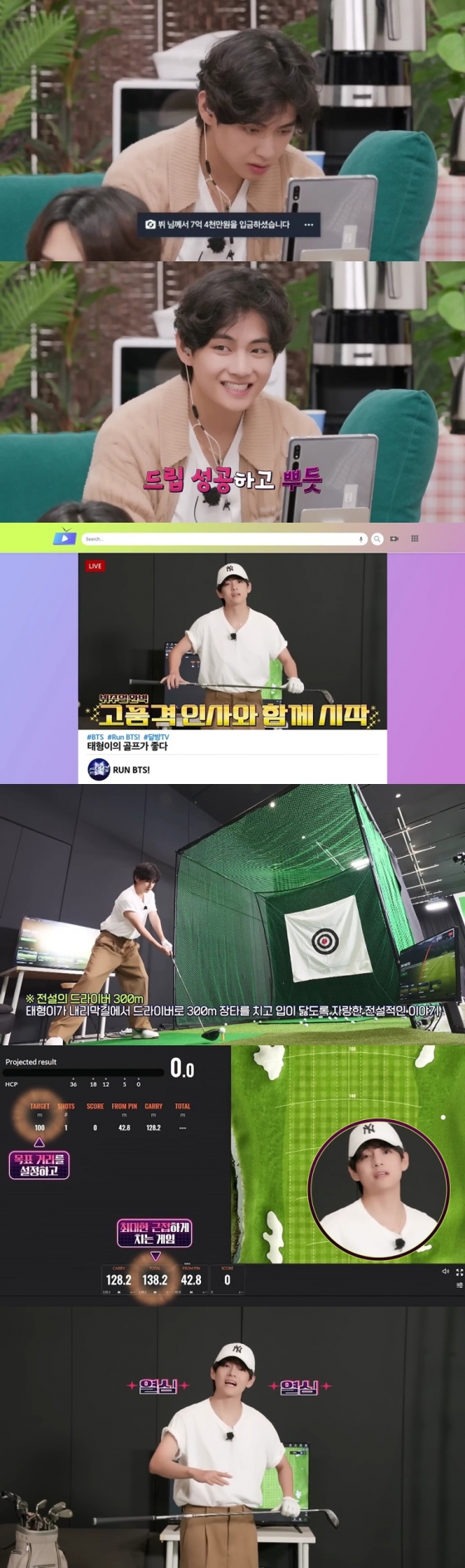 이어서 뷔는 자신감 넘치는 목소리로 "저 가요?" 라며 '태형이의 골프가 좋다' 제목의 스크린 골프 방송을 시작했다.