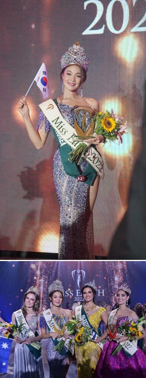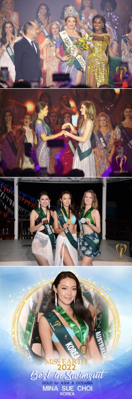 최미나수는 지난 29일 오후 6시(현지시간) 필리핀 마닐라에서 열린 '미스 어스 2022'에서 콜롬비아-팔레스타인-오스트레일리아와 함께 TOP4에 진출하는 경합 끝에 최종 1위를 거머쥐었다. 자신의 이름이 호명되는 순간 최미나수는 뜨거운 눈물을 흘리며 기쁨을 감추지 못했고, 거대한 '왕관'의 주인공이 되며 피날레를 멋지게 마무리 지었다.