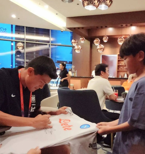 공개된 사진에는 시안 군이 김민재에게 직접 사인을 받는 모습이 담겨 있다. 김민재는 자신이 소속된 나폴리 유니폼에 직접 사인을 하고 있다. 시안 군은 김민재의 사인이 적힌 유니폼을 입고 손가락으로 브이(V)를 그리며 만족스러운 표정을 지었다.