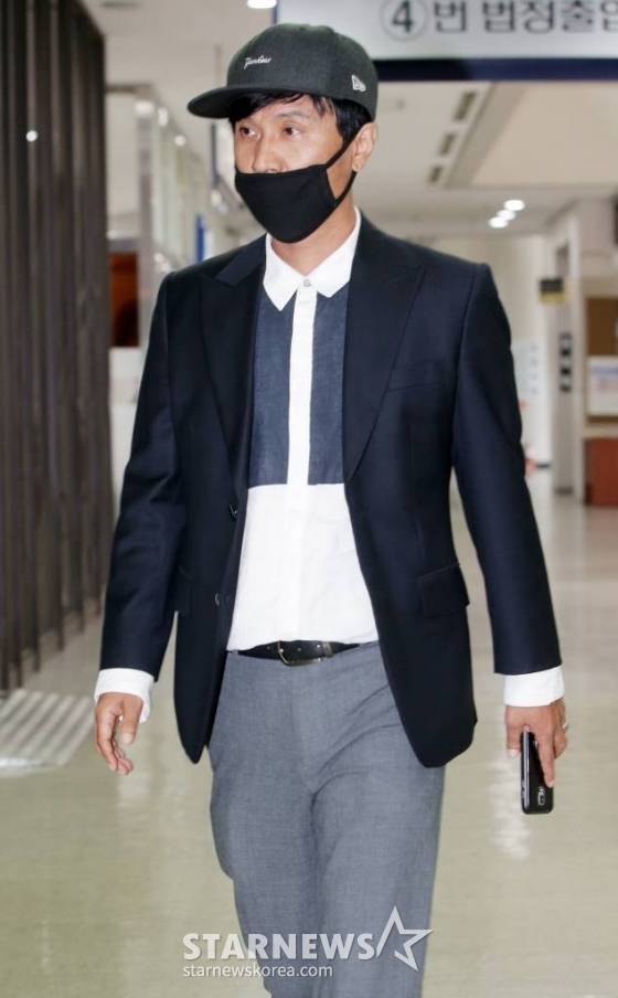 강제추행, 사기 혐의로 징역 1년 6개월의 실형과 40시간 성폭력 치료 프로그램 이수, 신상정보 등록을 요청 등의 선고를 받은 가수 이주노가 7일 오후 서울 서초구 중앙지법에서 열린 첫 항소심 공판에 출석하고 있다. /사진=김창현 기자 chmt@