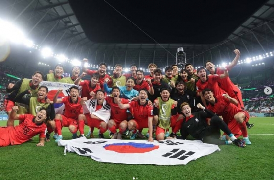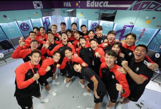 주장 손흥민은 "저희는 포기하지 않았고 여러분들은 우릴 포기하지 않았습니다 대한민국 사랑합니다! KR"이라며 대표팀이 경기장에서 16강 진출이 확정된 후 기뻐하는 모습, 황희찬의 상의 탈의 순간, 조규성과 태극기를 든 모습 등을 전했다. 김호영은 조규성과 손흥민 등의 국가대표 선수들의 계정에 모두 등장해 "자랑스러워요!!! 끌어올려"라고 적어 웃음을 자아냈다.