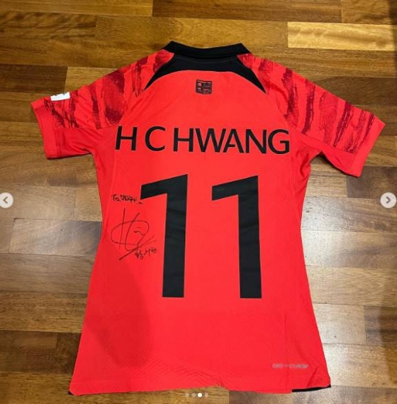 이와 함께 그는 황희찬과 만나 셀카를 찍은 모습, 황희찬에게 사인티를 받은 인증샷을 공개했다.