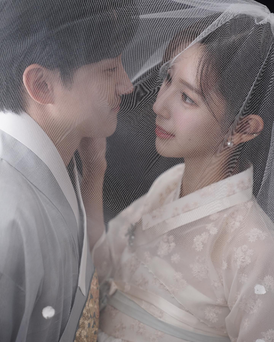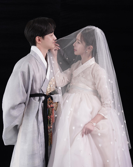 공개된 사진에는 야옹이 작가의 한복 웨딩화보다. 또한 연인 전선욱 작가와 나란히 서 있는 모습도 있다. 두 사람은 서로를 바라보며 행복 가득한 모습이다.