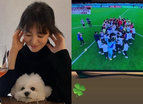 배우 송혜교가 대한민국 축구대표팀의 2022 카타르 월드컵 16강 진출을 조용히 축하했다.