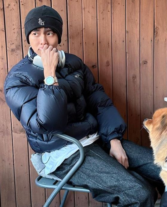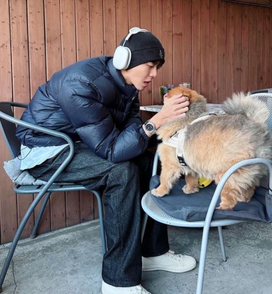 공개된 사진 속 주우재는 유행하는 헤드셋을 낀 채 의자에 앉아 반려견과 소통을 시도하고 있다. 눌러쓴 검정 비니 속 그의 작은 얼굴과 우월한 비율이 보는 이들의 시선을 사로 잡는다.