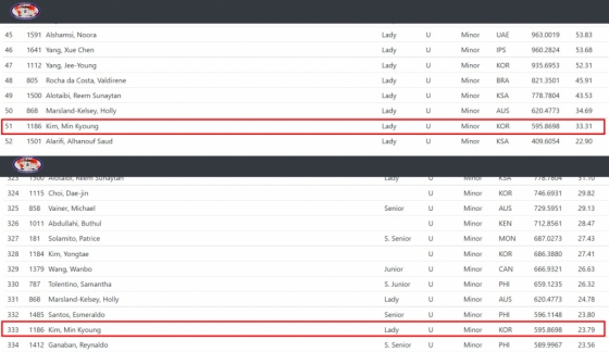 4일 오전 기준 2022 IPSC (International Practical Shooting Confederation, 국제실용사격연맹) 핸드건 월드 슛 대회 공식 홈페이지에 따르면 김민경은 여성 부문에서 51위, 전체 333위에 올랐다. 앞서 그는 19위라고 알려져 놀라움을 자아냈으나, 이는 중간 집계 결과인 것으로 보인다.