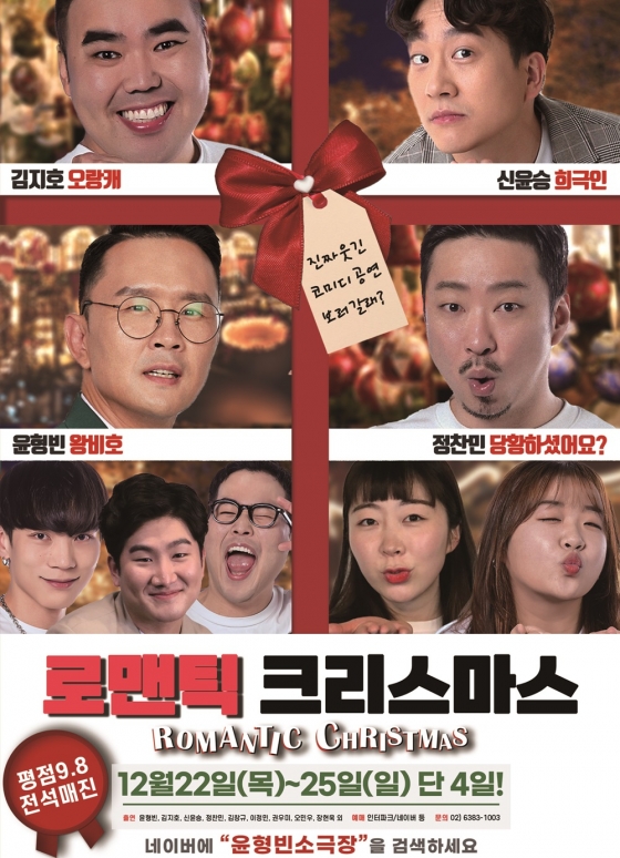 윤형빈은 "올해 '로맨틱 크리스마스'는 더 많은 관객들을 모시기 위해서 22일부터 25일까지 나흘 동한 하루 6회, 총 24회 공연을 펼친다"며 "관객들이 다사다난했던 2022년의 마지막을 웃음으로 마무리하실 수 있도록, 윤형빈소극장의 모두가 심혈을 기울여 '로맨틱 크리스마스'를 준비하고 있다"고 전했다. '로맨틱 크리스마스'는 온라인을 통해 예매할 수 있다.