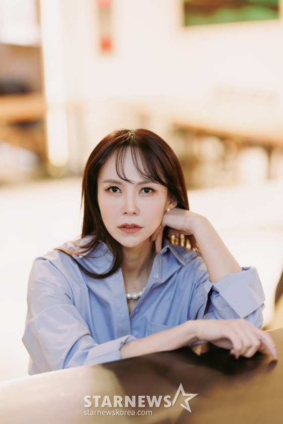 뮤지컬 배우 김지우가 5일 서울 강남구 압구정의 한 카페에서 진행된 뮤지컬 '물랑루즈' 관련 인터뷰를 취해 포즈를 취하고 있다.