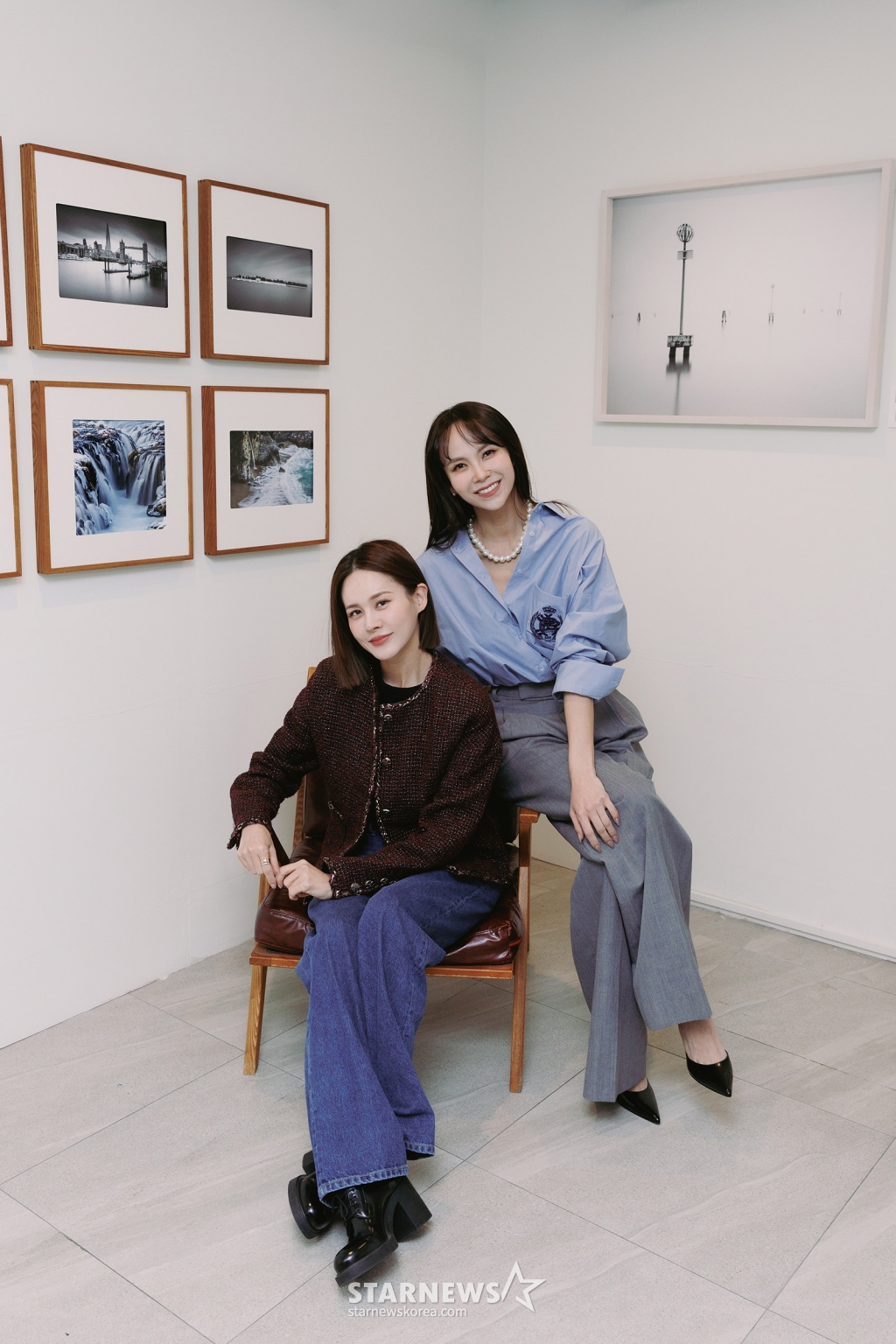 뮤지컬 배우 아이비, 김지우가 5일 서울 강남구 압구정의 한 카페에서 진행된 뮤지컬 '물랑루즈' 관련 인터뷰를 취해 포즈를 취하고 있다.