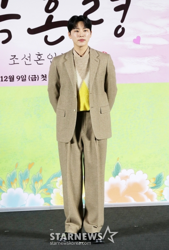 베우 김우석이 8일 오후 서울 용산구 아이파크몰 CGV에서 진행된 MBC 금토드라마 '금혼령, 조선 혼인 금지령' 제작발표회에 참석해 포즈를 취하고 있다.