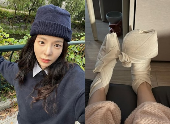 사진에는 장재인의 발이 담겨 있다. 그는 양발을 붕대로 꽁꽁 싸매고 있어 팬들의 걱정을 자아냈다.
