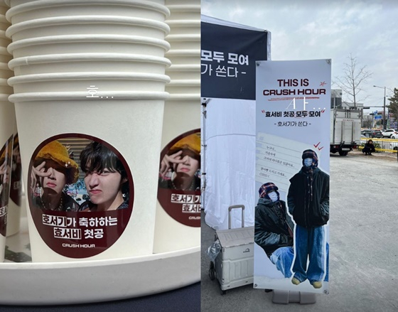 공개된 사진에는 제이홉에게 받은 선물을 들고 있는 크러쉬의 모습이 담겼다. 이는 전국투어 공연을 진행하는 크러쉬를 위해 제이홉이 준비한 깜짝 선물이다. 또 다른 사진에는 제이홉이 준비한 커피차의 모습도 담겼다.