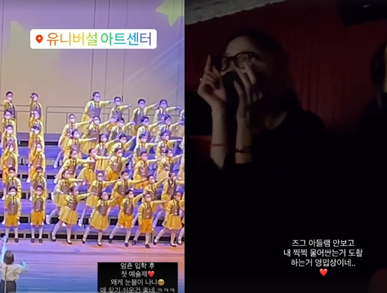 또한 윤혜진은 친구가 촬영한 영상을 공개하기도 했다. 지온이의 무대를 보며 울고 있는 윤혜진의 모습이 포착됐다.
