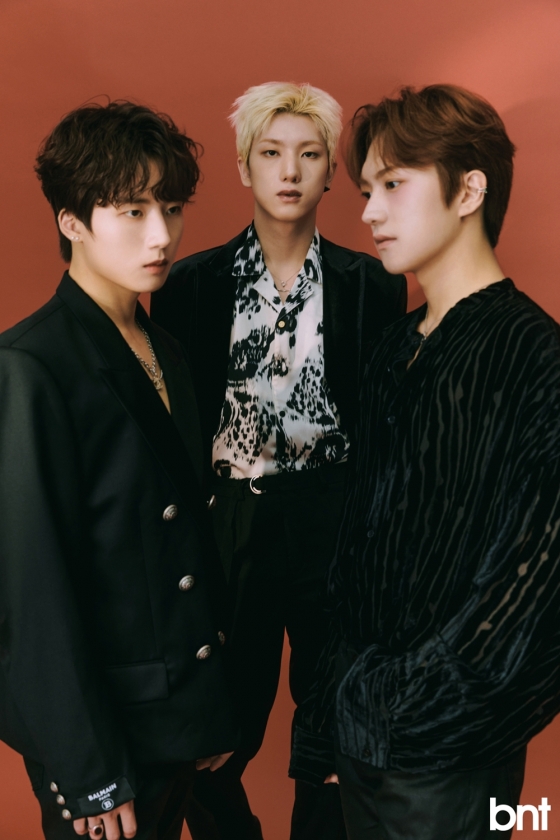 저스트비 멤버 이건우, JM, 전도염은 최근 bnt와 함께 두 가지 콘셉트의 화보 촬영을 진행하며, 다채로운 비주얼을 선보였다.