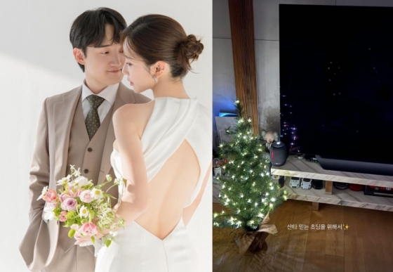 사진 속엔 야옹이 작가와 전선욱 부부가 크리스마스를 맞이해 트리를 장식한 걸로 보인다. 특히 심플한 신혼집에 아기자기한 트리가 있어 이목을 끈다.